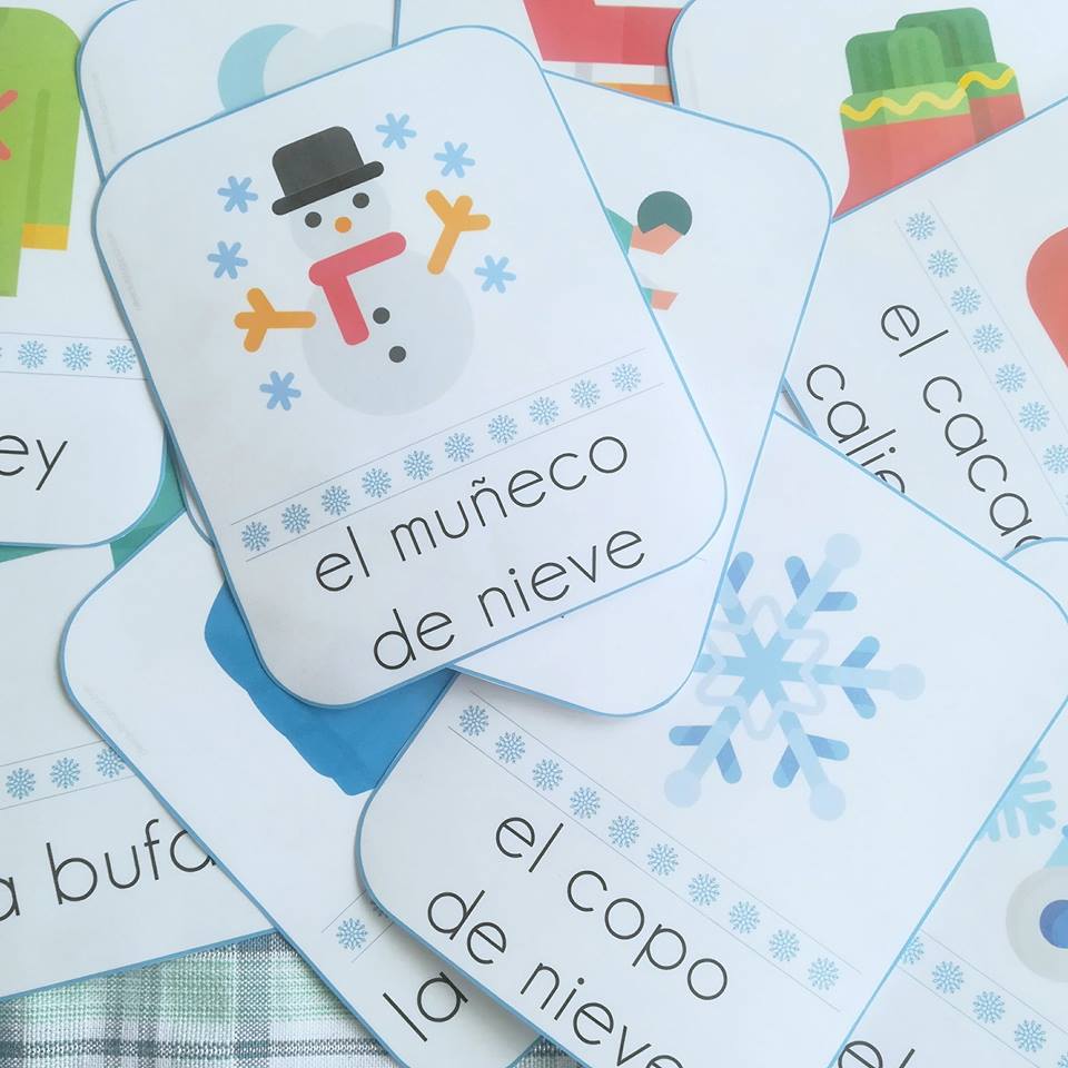 ¡Hola a todos! Ya se siente el frío, por eso aquí os dejo algo para introducir el vocabulario de invierno. Esta vez las tarjetas (flashcards) son un poco diferentes. Me he dado cuenta de que en mi Instagram me siguen muchos profes de educación especial. Por eso he decidido hacer el material más grande para los alumnos con algunas deficiencias (dibujos más grandes, la letra más grande y más clara y el tamaño de la tarjeta también más grande).